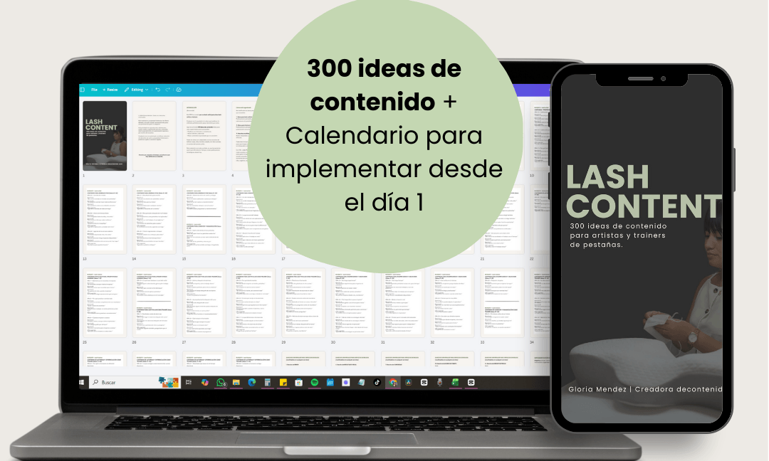 300 ideas listas para publicar y atraer más clientas y alumnas como lash artist o lash trainer sin volver a quedarte sin qué publicar.